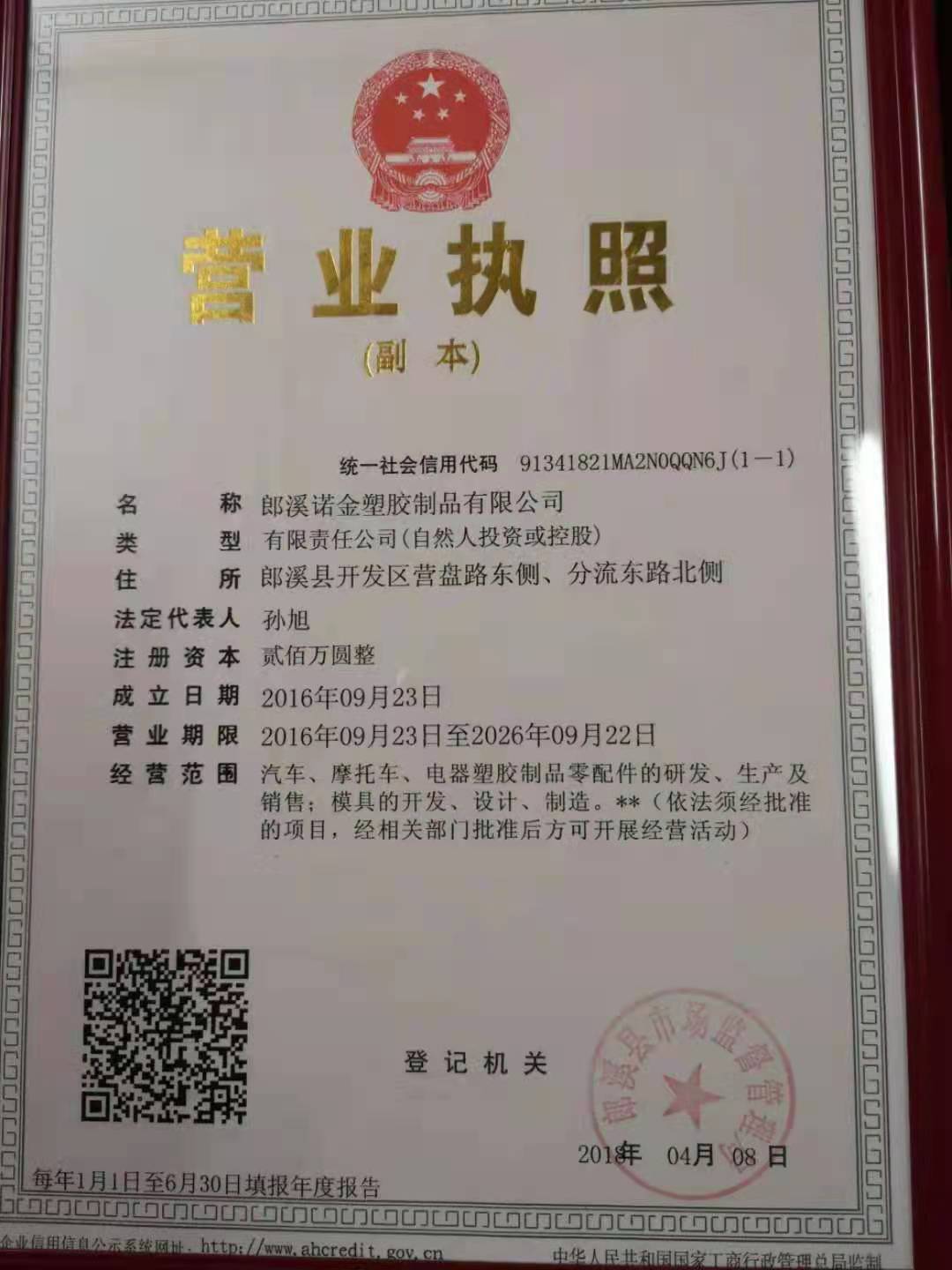 郎溪諾金塑膠制品有限公司,成立于2016年9月,坐落于安徽省郎溪縣經(jīng)濟(jì)開(kāi)發(fā)區(qū)分流東路6號(hào),郎溪縣質(zhì)量檢測(cè)站東面,公司總投資1000萬(wàn)元,占地面積3000平方,建筑面積2500平方。 公司擁有海天牌注塑機(jī)15臺(tái),可加工60T-800T不等的注塑件,每臺(tái)注塑機(jī)都配有機(jī)械手,傳送帶;全電腦數(shù)字化控制,有效地保障了產(chǎn)品的質(zhì)量。...